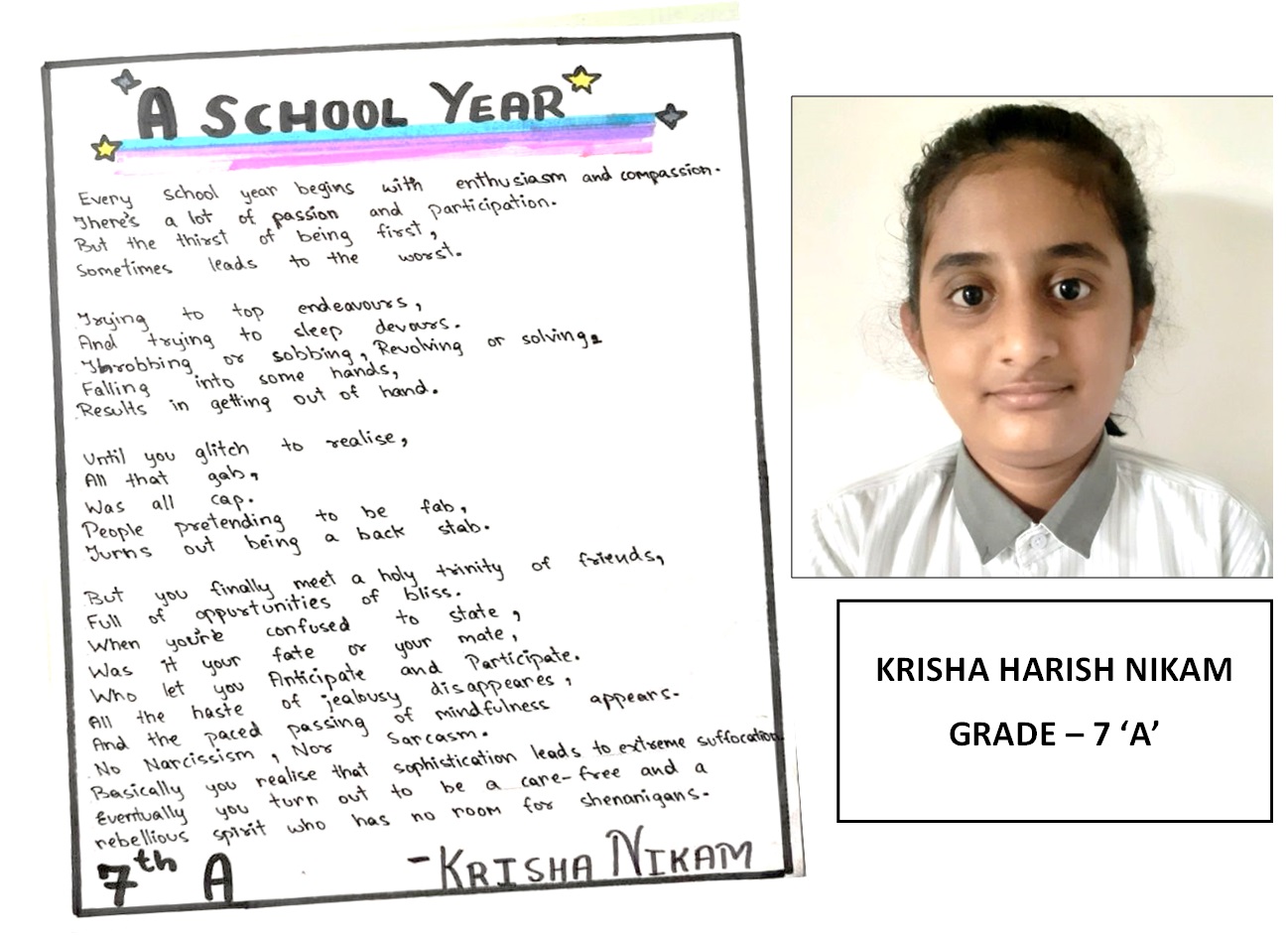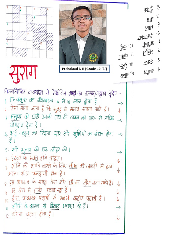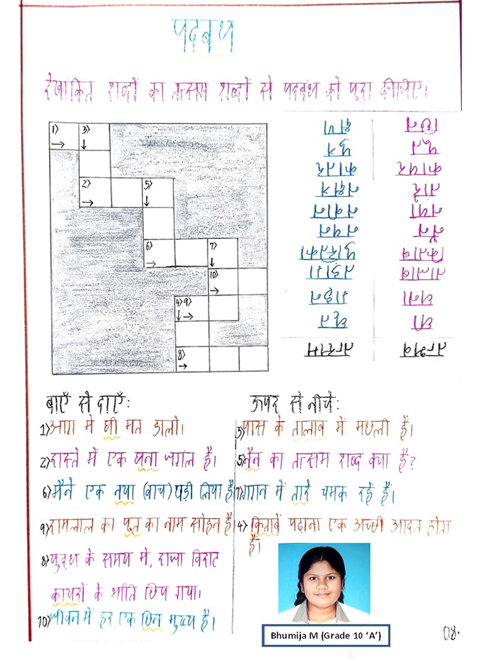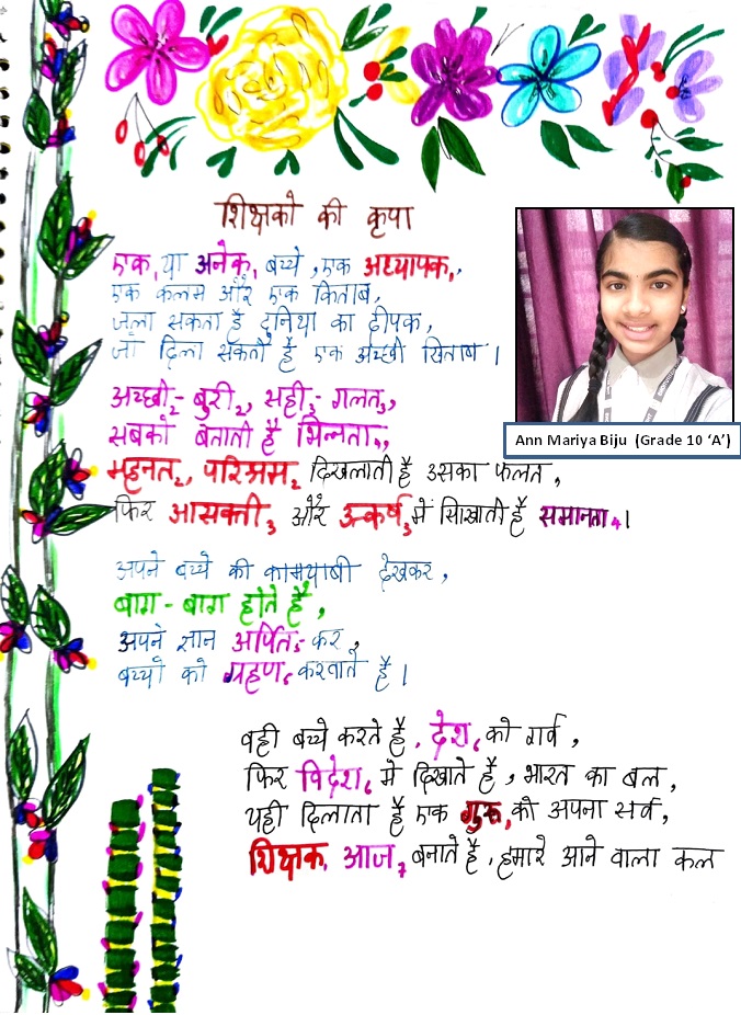 An awesome poem written by Ann Mariya Biju of Grade 10 'A' using opposite words (Vilom Shabdh) in Hindi.